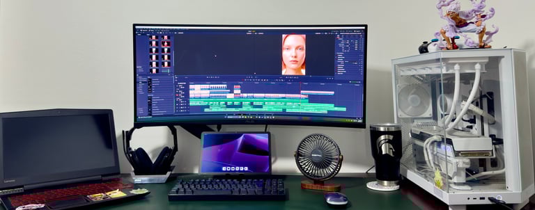 I combine professional editing tools with modern AI technologies to produce high-quality content faster and more effectively than traditional production methods.
